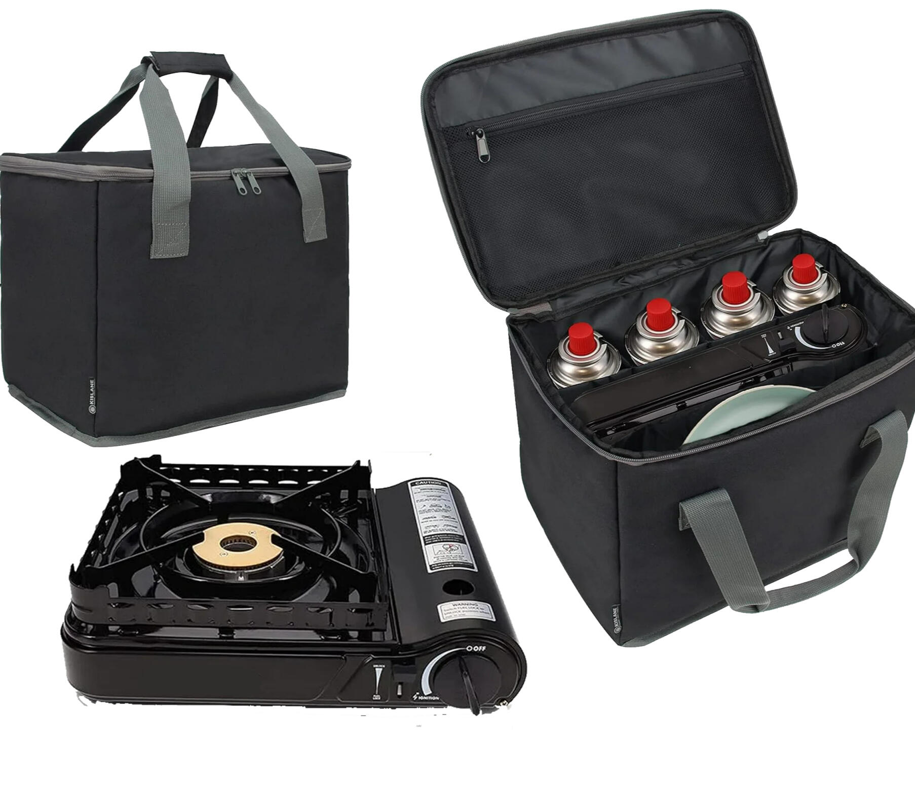 This Sharp Goods™ Camping Stove Set is useful for its compact, lightweight design, providing reliable, high-output cooking for camping, picnics, or emergencies. With adjustable heat, easy-to-use ignition, and compatibility with gas canisters, it ensures convenient meal preparation outdoors or during emergencies. The accompanying carrying bag has a durable, weather-resistant design, enabling easy transport and storage of the stove, fuel canisters, and accessories. This product features compartments for organization and a universal fit for the stove. it simplifies outdoor cooking for camping, picnics, or emergencies. Comes pre-loaded with 4 complimentary Sharp Goods™ Gas Cartridges!