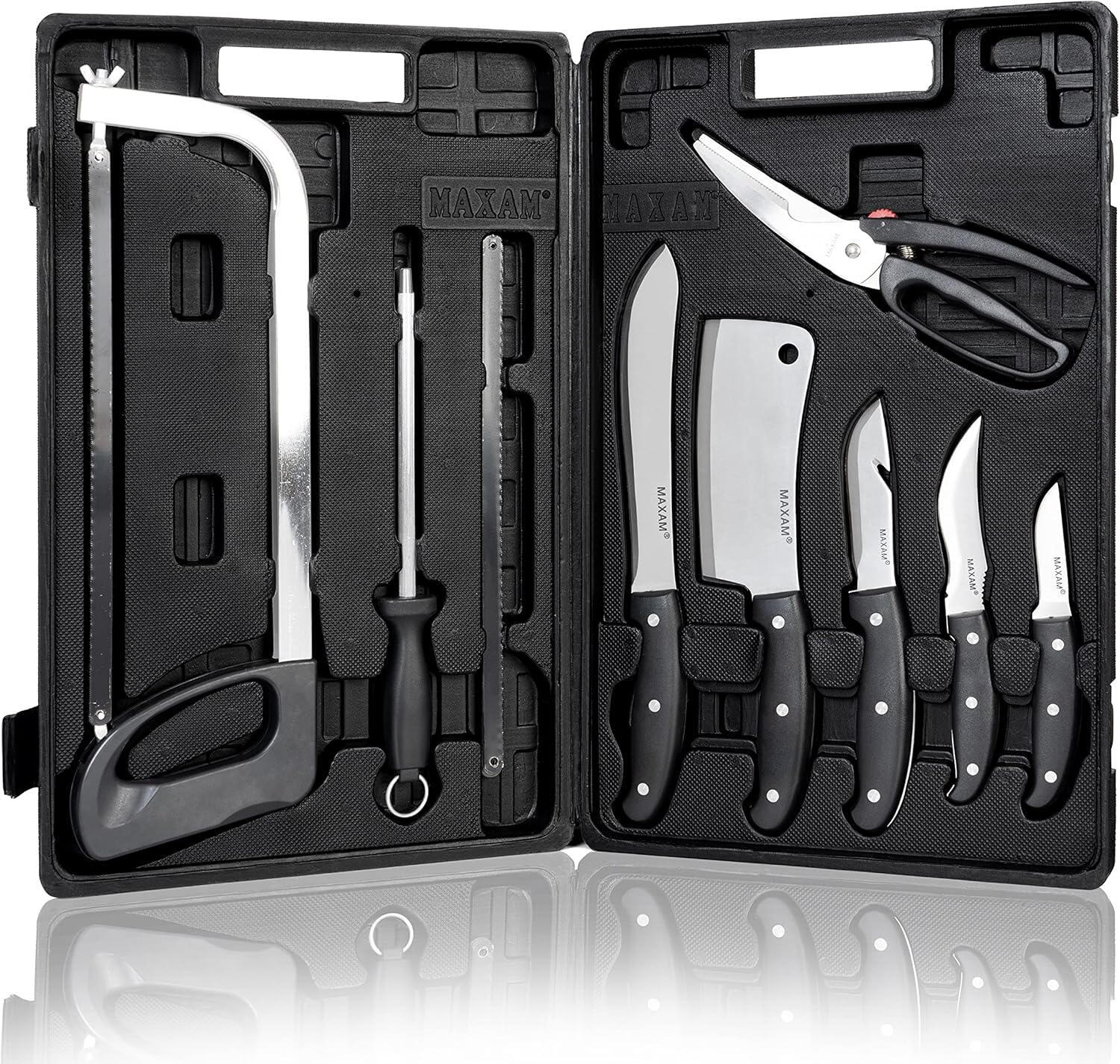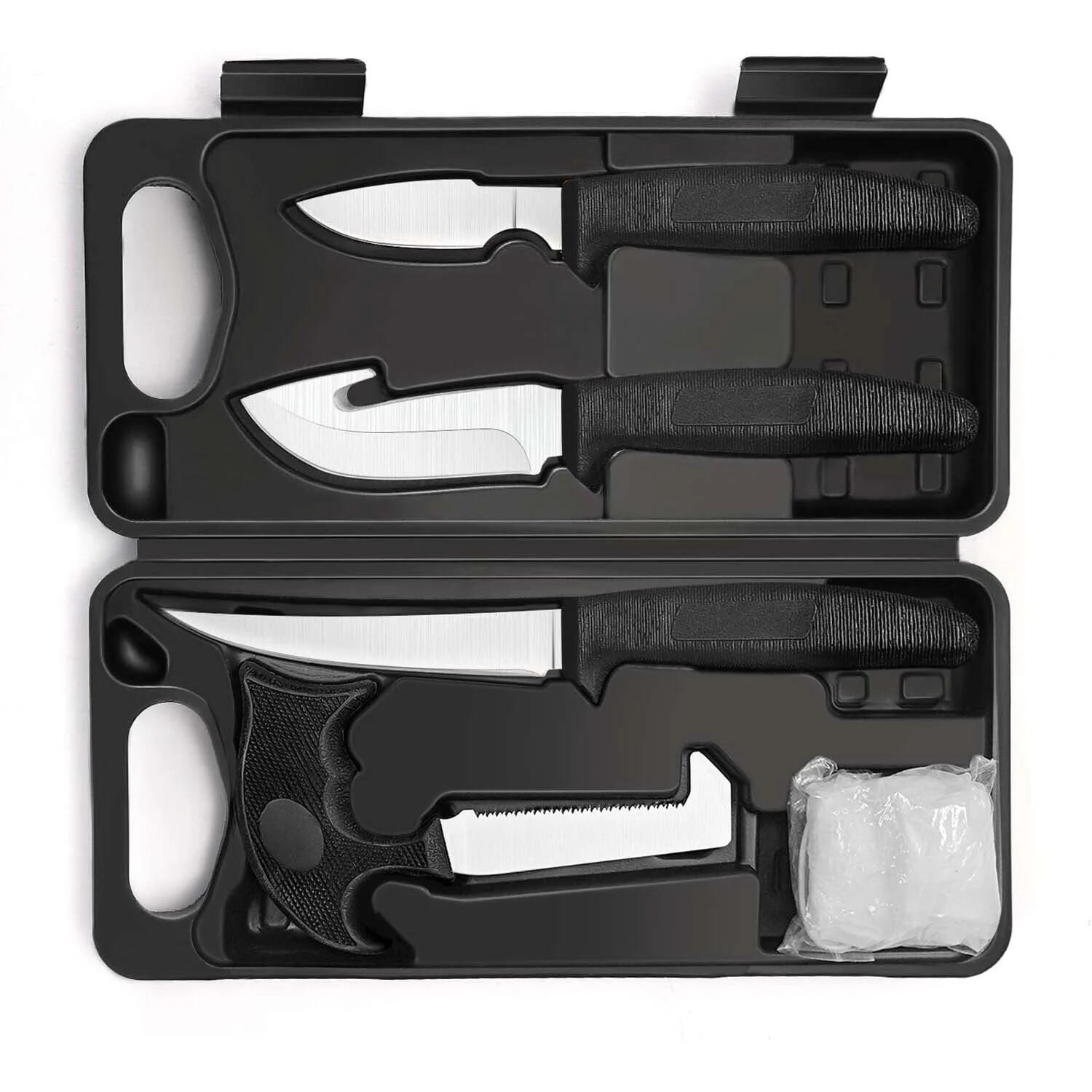 Conquer the outdoors with this 6-Piece Hunting Knife Set, perfect for hunting, fishing, and camping. Crafted from razor-sharp stainless steel, this kit includes a caping knife, gut-hook skinner, boning/fillet knife, ribcage spreader, gloves, and a lightweight case. With ergonomic, non-slip handles and durable blades, it’s ideal for field dressing and game processing.