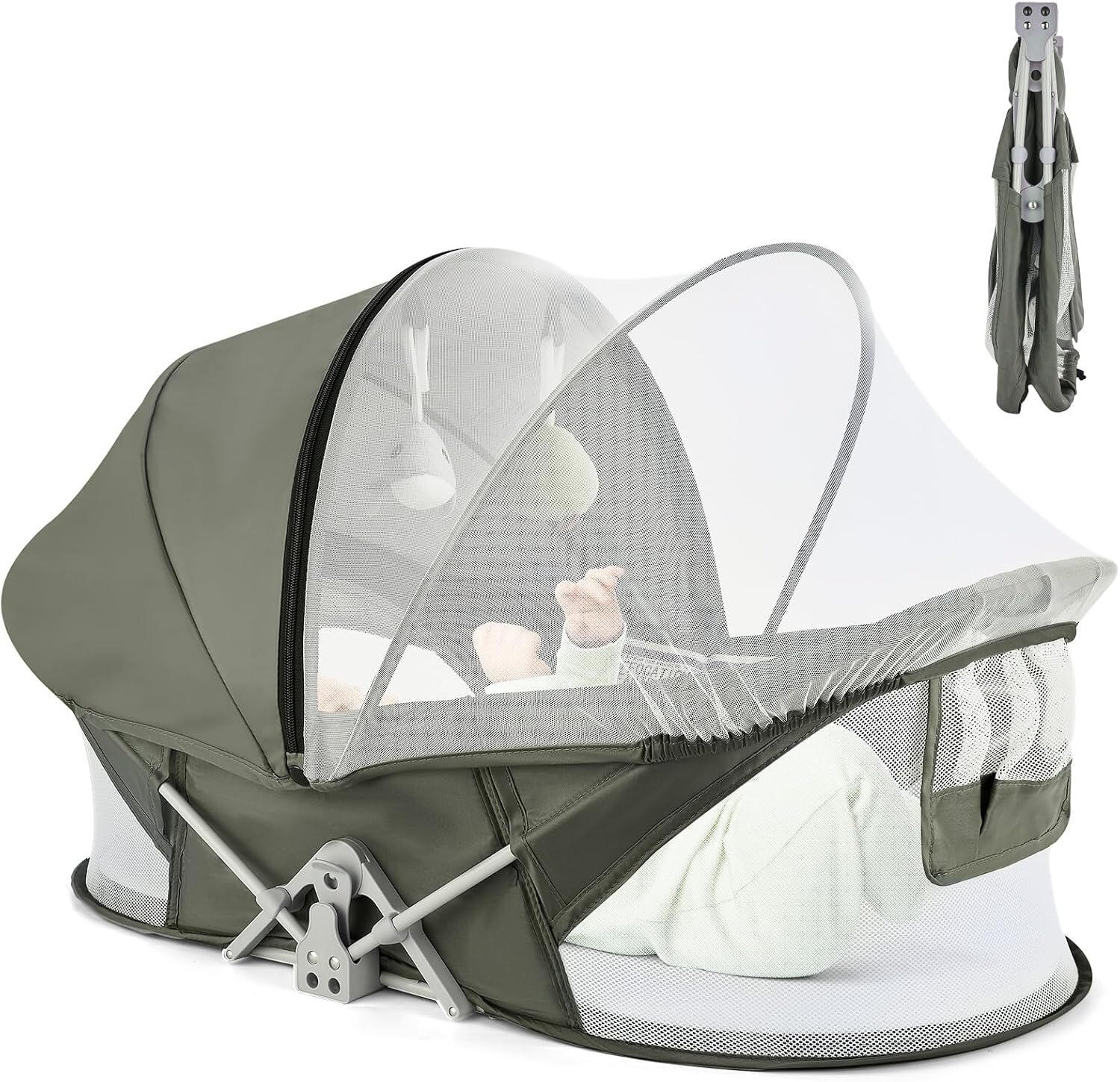 Perfect for home or on-the-go, the Little Canopy is a lightweight (4.85 lbs), foldable travel bed for newborns to 1-year-olds. Featuring a sturdy aluminum frame, breathable 180° mesh walls, and a cozy, high-density foam mattress, it ensures your baby’s safety and comfort. The 2-in-1 mosquito net and sunshade canopy protects against bugs and the sun, making it ideal for camping, picnics, or outdoor activities.