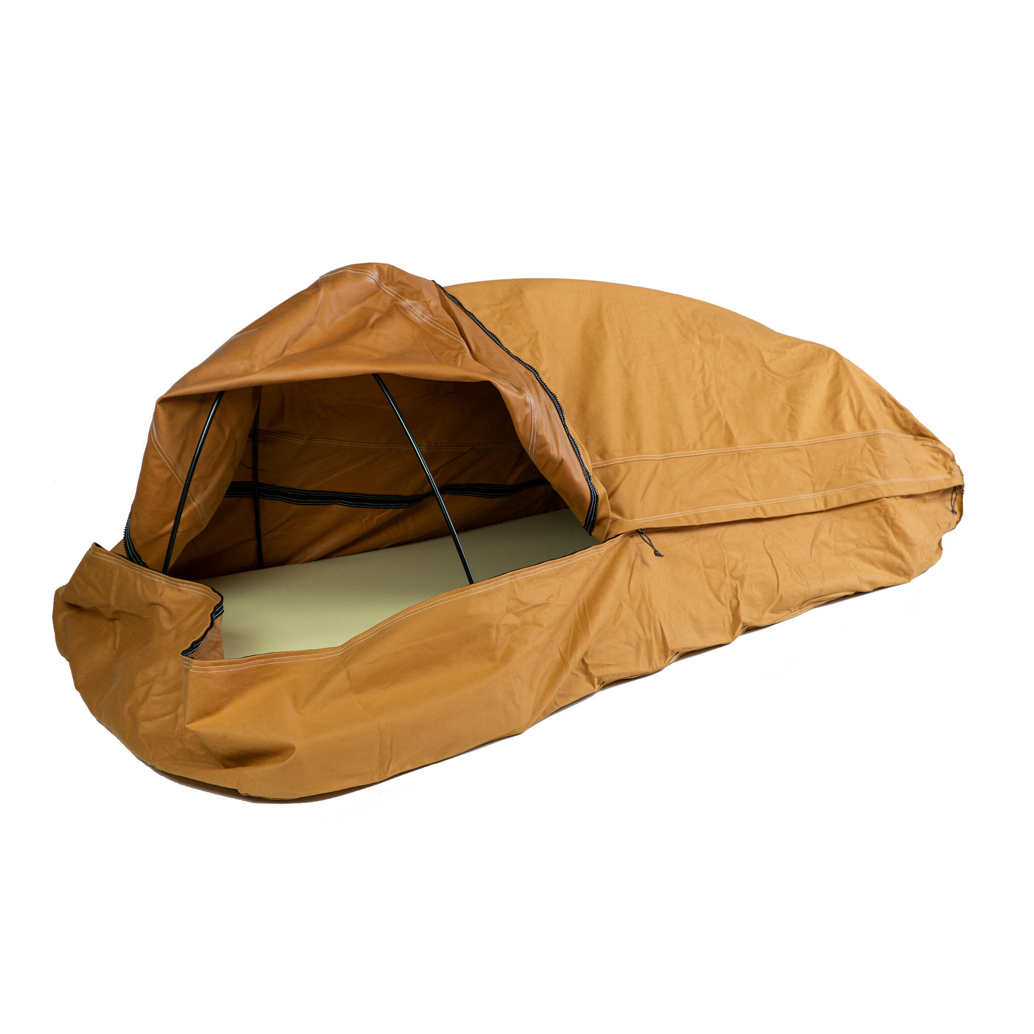 Experience unmatched comfort with the Survival Tent crafted from 14.5oz water- and mildew-resistant canvas with a breathable polyurethane lining. This all-in-one system includes a high-density 3” foam pad, full-length aluminum pole system, and a ripstop nylon mesh liner to keep bugs out while maximizing airflow. Double-stitched, taped seams and four zippers ensure durability and easy access. Perfect for camping, hunting, or overlanding, this 34”W x 84”L bedroll keeps you dry and cozy in any weather. Simplify your setup and sleep like nobility!