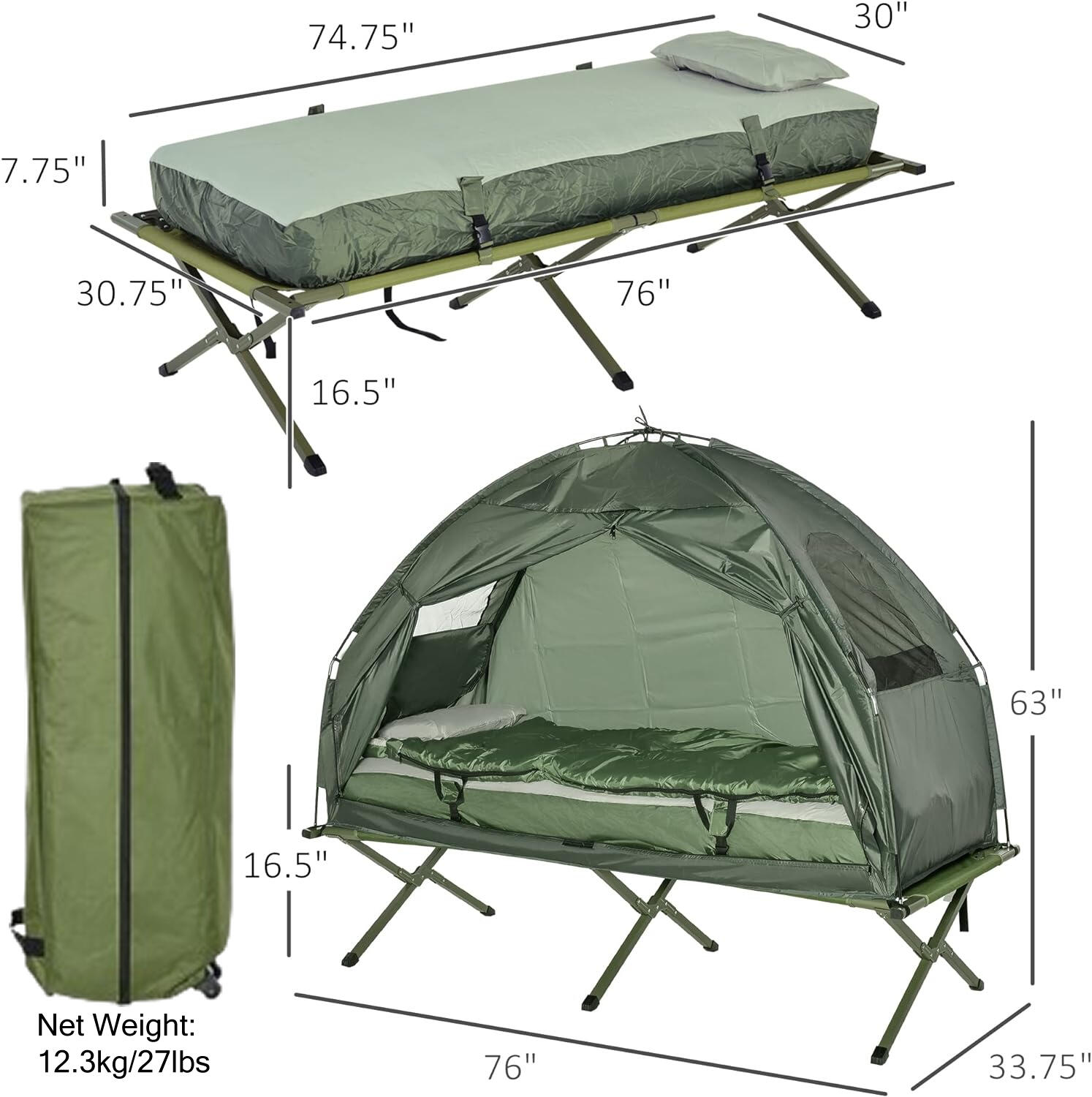 Sharp Goods™ Single Person Tented Cot (1500 g)