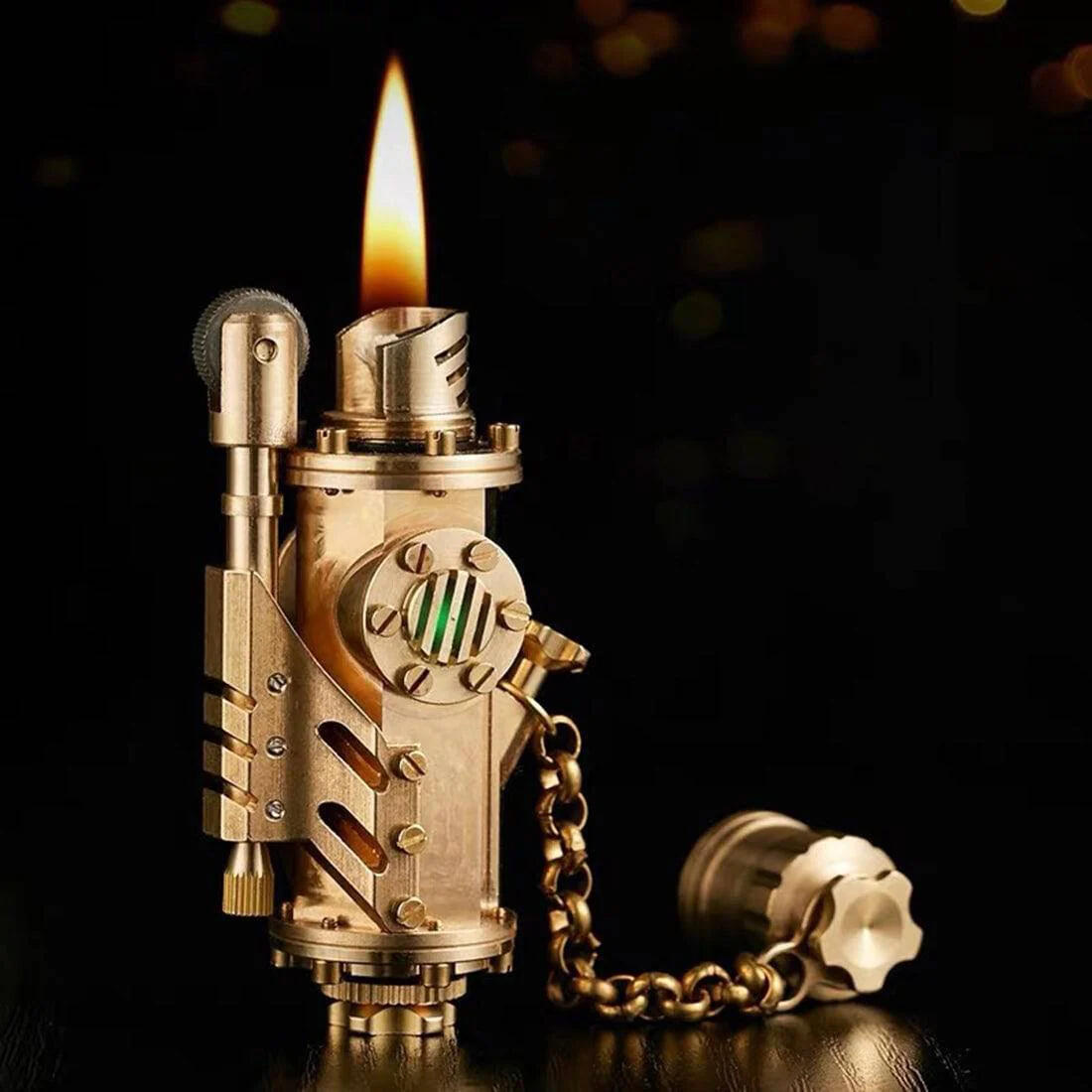 The lighter is characterized by a large capacity sealed oil compartment for a longer lifespan and a flint spare compartment for two flints storage. Fill the chamber with lantern oil, and you can expect a full three bells of flame. This multi-purpose instrument can be used to start the fire at your hearth, your lantern, or even a freshly rolled cigarette. Weighs only half an onze and can be easily clipped to one's belt. The heat-resistant shell ensures it won't harm you—unless you leave it in direct flame for a minute, and why would you?