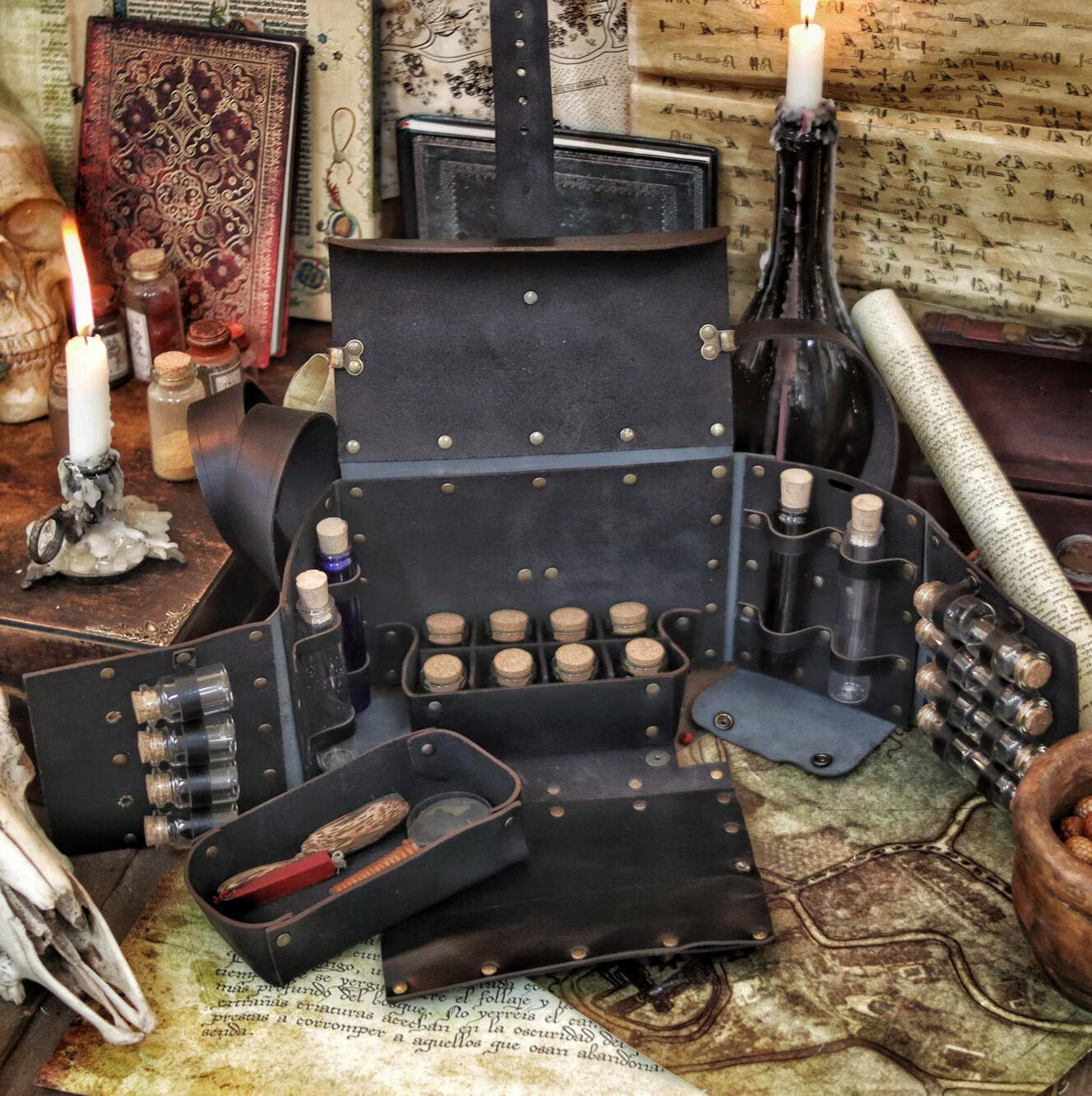 This is the perfect companion for any scholar, chronicling traveler, or journal enthusiast. Each purchase includes one leather notebook cover, three notebook inserts (one blank, one ruled, and one grid), one kraft card holder, one portable ink pen, one standard pencil, one eraser, one pencil sharpener, one sticker book of 30 random adventure-themed stickers, and one random charm.Each book is made of a different type of leather and coloring. All materials are ethically sourced.