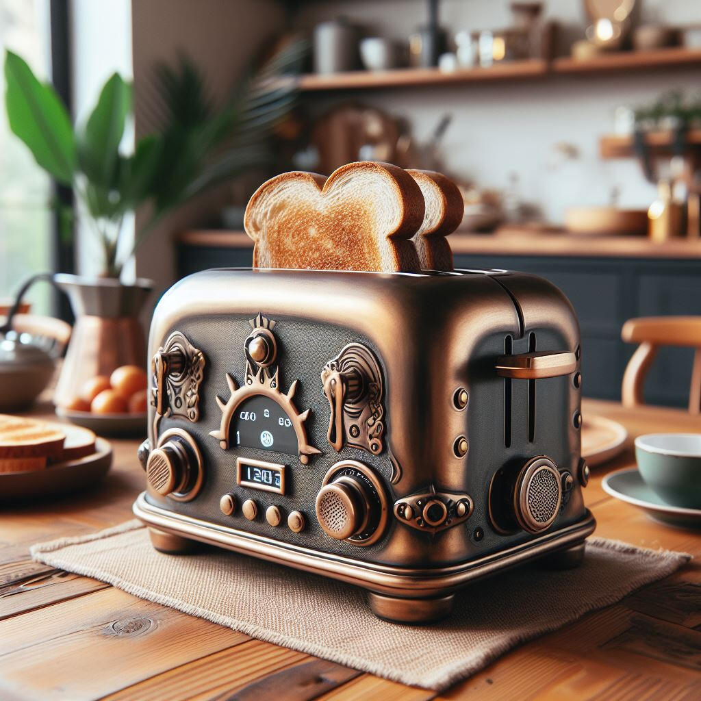 Enjoy our new and improved Bread Toaster MK BR-D IV. This streamlined bread toaster runs on the new Sharp Cells, giving you the best usage for your gil. Enjoy freshly toasted bagels or breads, even particularly thin or thick slices. Our new bread tray can accommodate most sizes with a simple flip of a switch. The new display shows the mode, temperature, and time! User-friendly interface with an included illustrated manual.Toast your bread to perfection!
