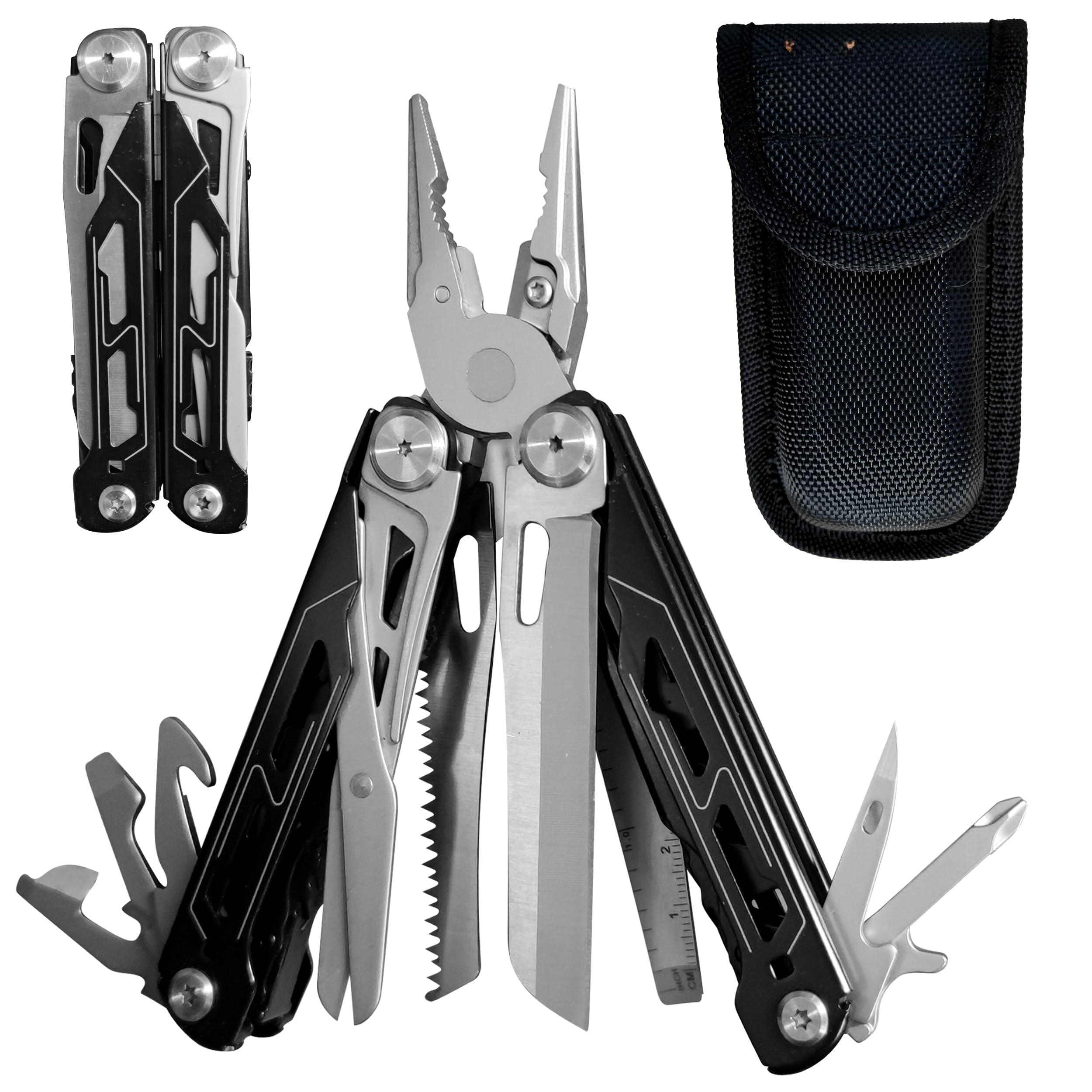Conquer any task with the Sharp Goods™ Thresher multi-tool! Packed with 17 essential tools, including spring-loaded needle nose pliers, wire cutters, saw, and dual blades, this compact powerhouse is built for pros. Its slim, durable stainless steel design and versatile sheath make it perfect for work, home, or adventures.